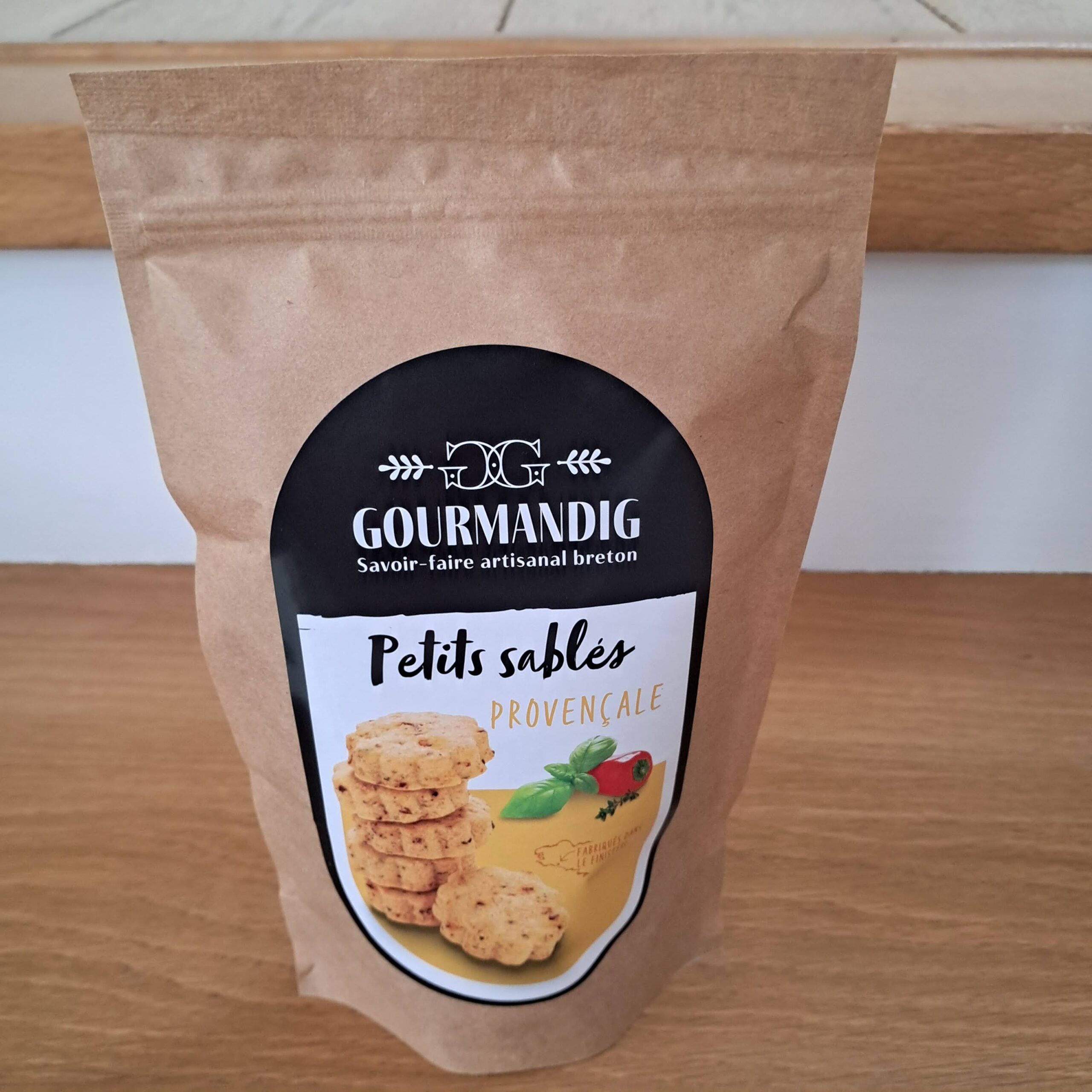 Retrouvez le bruit des cigales dans ce petit sablé apéritif ! Craquez pour sa texture croustillante et fondante. Pour concocter ce biscuit à la provençale, les pâtissiers ont choisi des ingrédients de grande qualité ! Du bon beurre, de la farine française, des poivrons rouges et verts, des oignons et de l’ail. Résultat ? Un biscuit apéritif aux saveurs de Provence ! Concocté avec amour à Quimperlé.