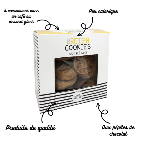Farine de sarrasin, sucre, beurre salé, oeufs, levure, pépites de chocolat