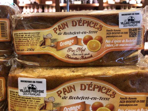 Ingrédients: Miel 40%,farine de froment et de seigle, orange 18%, lait, oeufs, poudre à lever: bicarbonate de soude, épices naturelles.