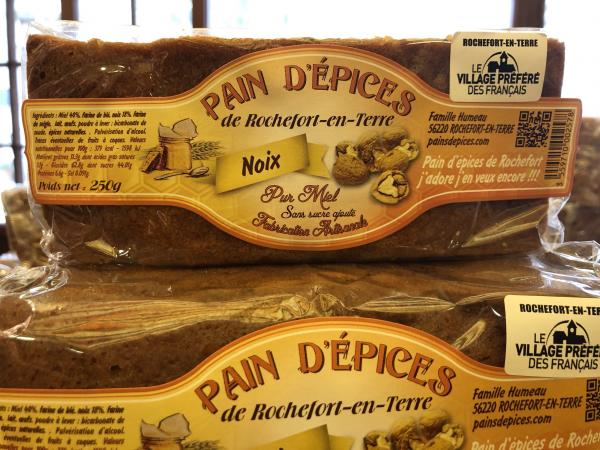 Ingrédients: Miel 40%,farine de froment et de seigle, noix 18%, lait, oeufs, poudre à lever: bicarbonate de soude, épices naturelles.
