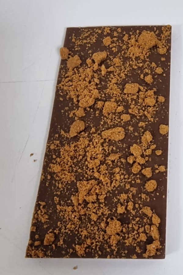 L’association fonctionne à merveille : la douceur du lait tempère la puissance épicée des biscuits, et chaque bouchée dévoile une texture contrastée et savoureuse. C’est un chocolat qui rappelle les goûters d’enfance et les desserts d’hiver, dans une version artisanale et élégante.