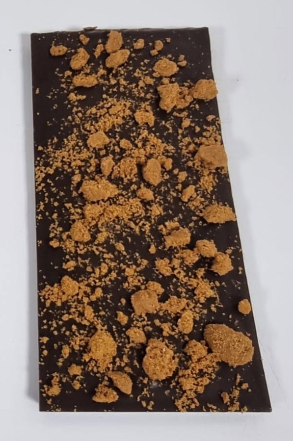 Ce chocolat noir révèle un bel équilibre : pas trop sucré, bien corsé, avec une texture croquante apportée par les éclats généreux de spéculoos. C’est le compagnon idéal d’un café noir ou d’une tisane épicée, mais aussi une base originale pour vos recettes de desserts maison.